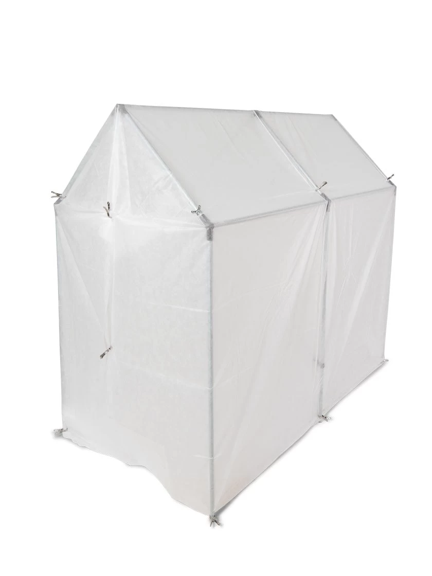 We provide instructions and connectors, you provide 3/4″ EMT (electric metal tube) available at hardware stores and is affordable. Create the frame size for garden covers that will cover your space. Build it and leave it in for years or pick it up and move it to another space. Materials are long lasting. Kit includes: 3 – roof peak angle connectors, 6 – angled side to roof connectors, 2 diagonal brace connectors.