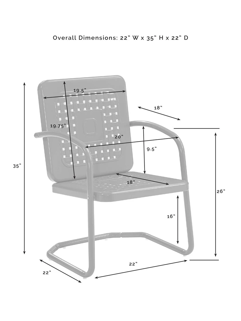 - Chairs – 22″ W x 18″ D x 35″ H