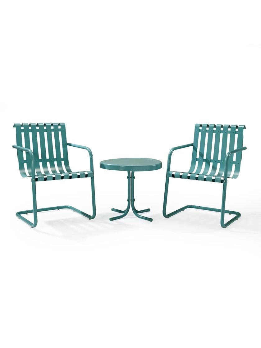 Prepare to be swept back in time with this Gracie Conversation Set. This three-piece set features two retro-inspired Gracie chairs and one side table. Designed to gently bounce away the frustrations of your day these pieces are made of aluminum and steel to withstand the elements.