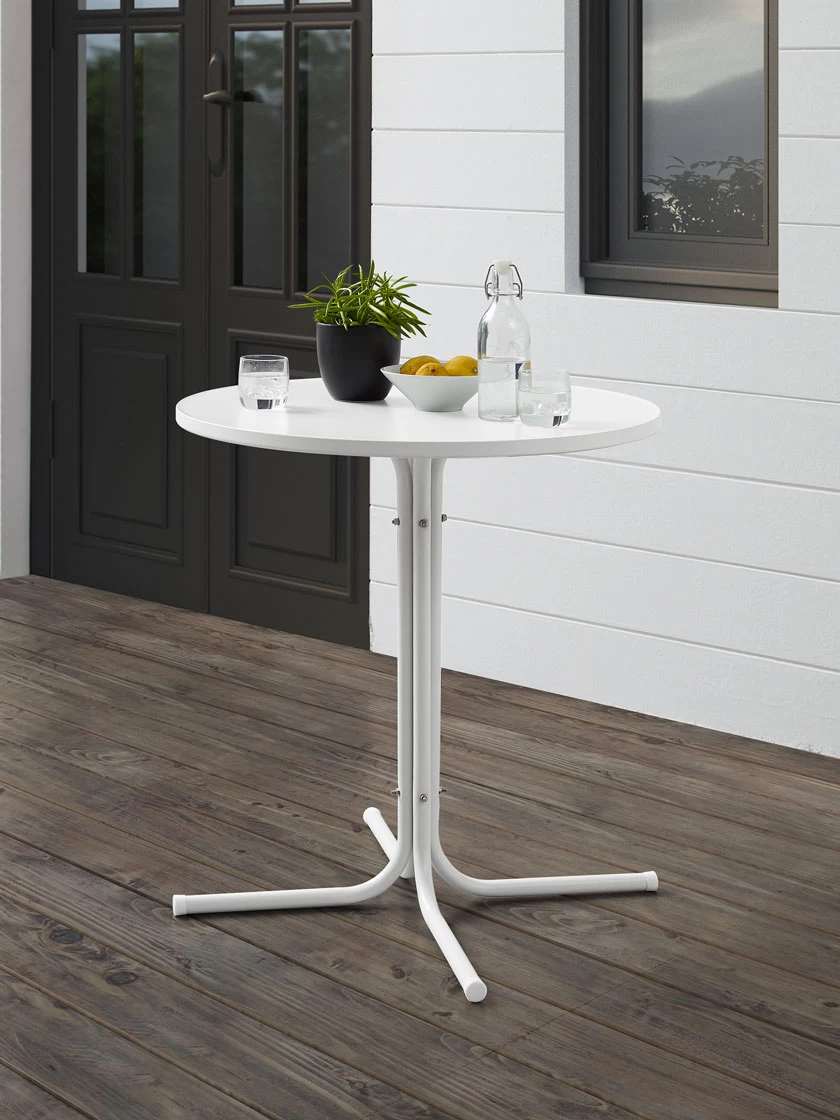 The Griffith Bistro Table brings simplicity and function for your outdoor retreat. Featuring a powder-coated finish over durable steel, this bistro table can partner with a variety of outdoor seating. With a sturdy pedestal base, this table can easily tuck between your favorite outdoor chairs, making the Griffith Bistro Table ideal for small balcony or patio.
