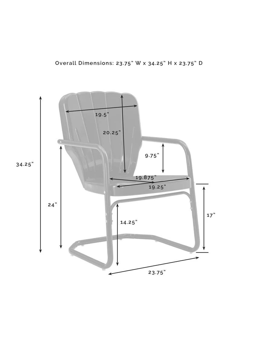 - Chairs – 19-1/4″ W x 19-7/8″ D x 34-1/4″ H
