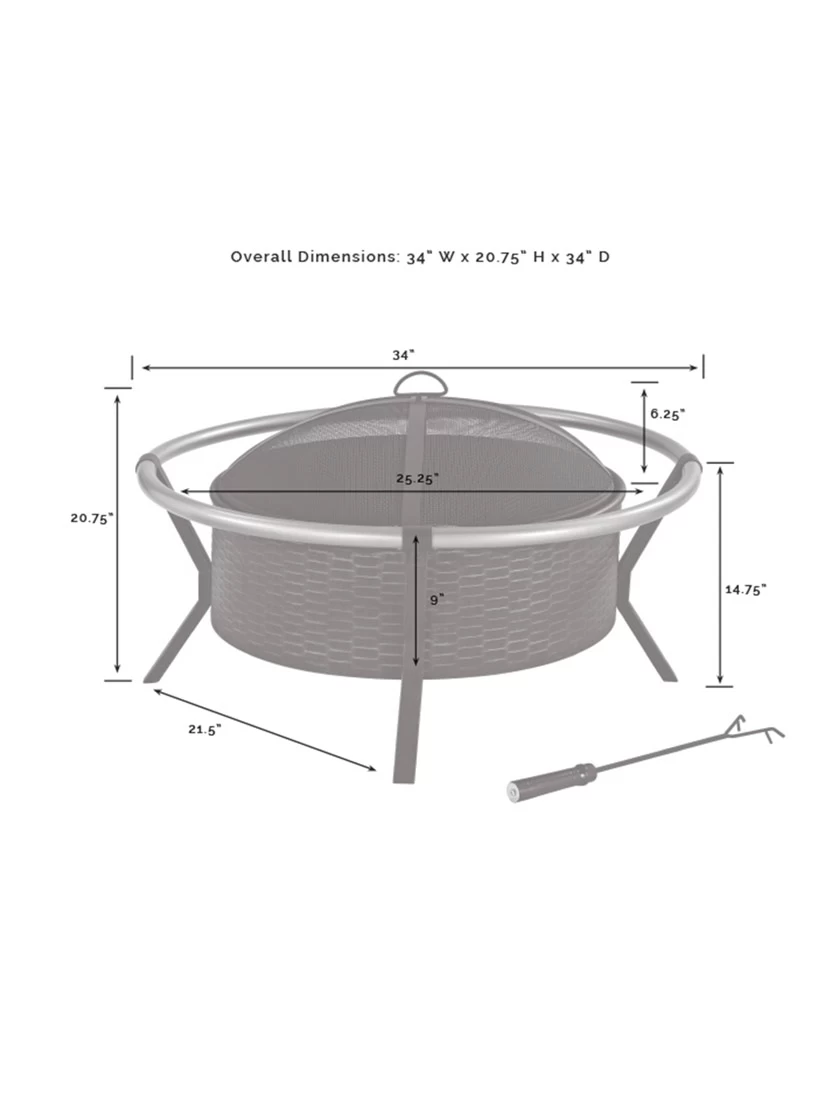 Add a unique flair to your outdoor gatherings with the Yuma Fire Pit. Constructed of durable, weather-resistant steel, the Yuma features a deep bowl designed for a warm, long-lasting fire. The included mesh cover will keep sparks at bay, while the steel poker keeps your fire stoked and doubles as a screen lift. Finished with a decorative copper-finished steel ring, this fire pit bowl will be the centerpiece of your backyard memories for years to come.