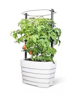 Simple, sturdy, and stylish, this planter and trellis combo is made from all-natural materials and designed to let your plants take center stage. Best for determinate tomatoes, the strong and sustainable bamboo trellis features three tiers of laminated bamboo rings and provides nearly 40ā of sturdy support for luscious fruits. Elevated 10cm off the ground with a stylish bamboo stand, preventing soggy soil, the planter basket is made from woven bamboo secured with hemp rope, then lined with a replaceable coir insert, which helps retain soil moisture while allowing healthy drainage, and encourages air-pruning for stronger, healthier root systems. A 12ā planting depth and 25-quart soil capacity provides just the right amount of room for determinate tomatoes to thrive. Assembly required, with pre-drilled holes to increase efficiency.