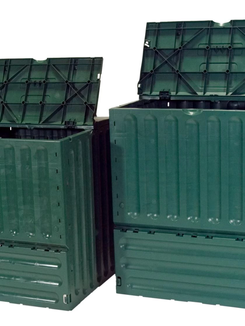 Eco-King composters are easy to fill from the large top flaps. Featuring a large capacity and wind-fix clips to keep the lid from blowing open, finished compost can easily be accessed from two bottom flap doors at either side. Easy assembly without tools. Made from 100% recycled material.