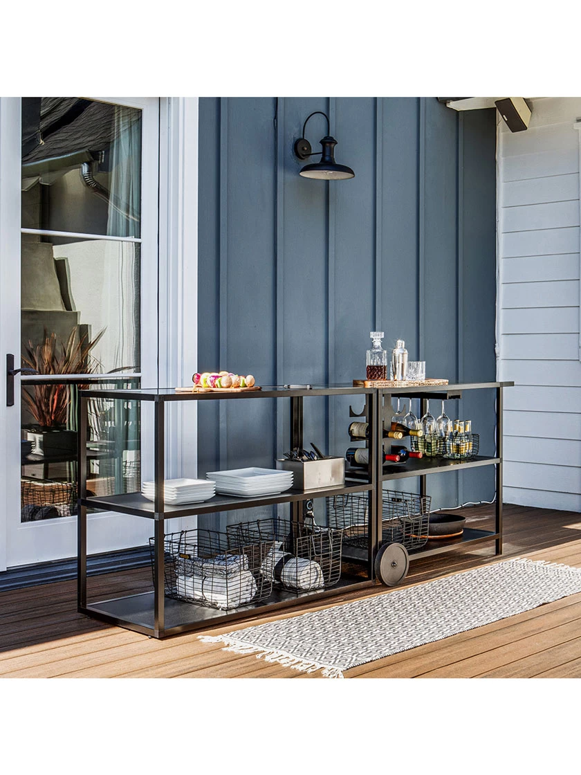 Maximize your time in the outdoors! With Veradek Outdoor Kitchen modules, you can design the perfect kitchen to fit your unique outdoor space. Made from a sturdy, corrosion resistant aluminum frame and protected by a strong, scratch-powdercoat, the Veradek Outdoor Bar Cart is built for the outdoors. The Bar Cart comes equipped with a durable, food-safe brushed stainless steel countertop that is easy to clean and maintain. Lower shelving panels are made from corrosion-resistant, powder-coated aluminum and come equipped with durable anti-scratch mats. Best of all, all Veradek Kitchen pieces are modular, allowing you to mix and match modules to create a kitchen to perfectly fit your unique patio or deck area. Get your outdoor party started with a Veradek Outdoor Bar Cart!
