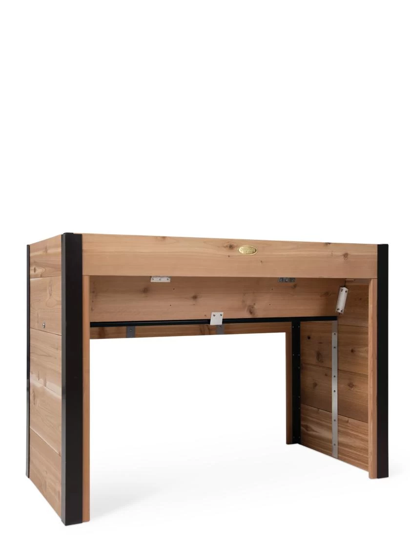 Our signature rustproof lifetime aluminum corners work to contain the naturally rot-resistant wood sides.